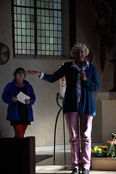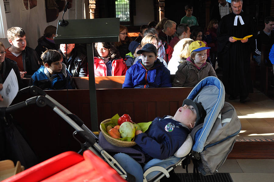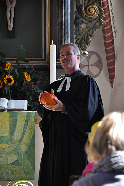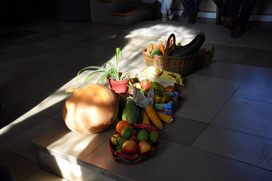 Es war beeindruckend, wie viele verschiedene Obst- und Gemüsesorten zum Altar gebracht wurden. Alle unsere Schülerinnen und Schüler waren an diesem fröhlichen Gottesdienst beteiligt: beim Singen und Klatschen, beim Sprechen der Gebete, beim Lauschen der Orgelklänge oder beim Raten, was man aus den Früchten als Speisen zubereiten kann. Patrick durfte sogar am Ende die Kerzen auslöschen.