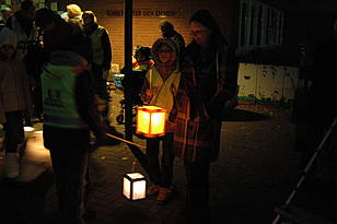 Gegen fünf ging es dann los zum Laternenumzug. Zum Glück hat es diesmal nicht geregnet, wie im letzten Jahr - wir haben aber auch alle kräftig die Daumen gedrückt! Es gab wieder viele schöne Laternen zu bewundern. Man hat gesehen, dass alle Kinder sich viel Mühe gegeben haben beim Basteln. Natürlich durfte auch hier die Musik nicht fehlen: Bei den Laterneliedern haben alle kräftig mitgesungen.