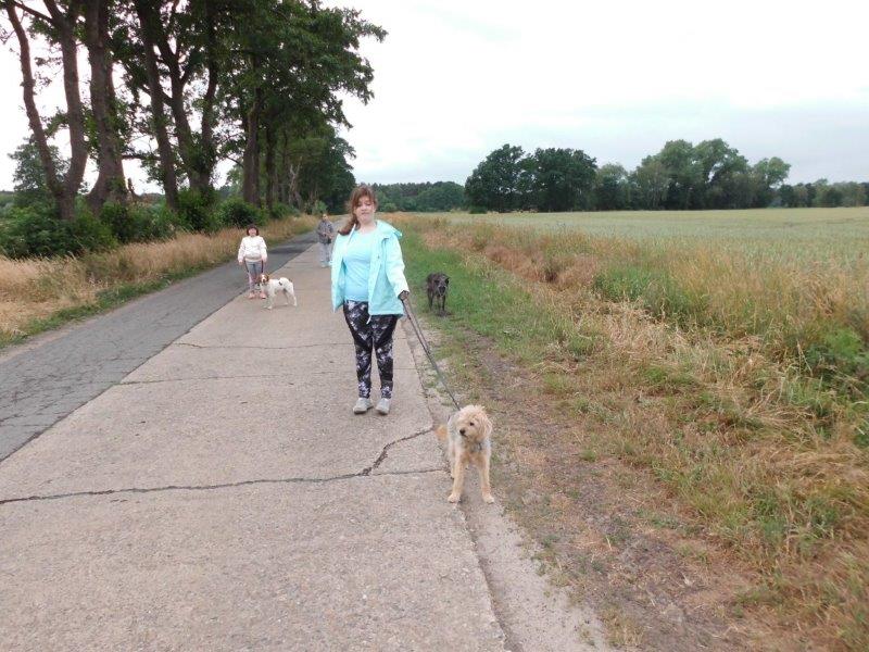 Am 13.06.2018 trafen wir uns morgens in der Schule. Dort haben wir zuerst gefrühstückt. Dann haben wir all unsere Sachen in Ulrikes und Sophias Auto gepackt und sind zu Sophia gefahren. Die Hunde haben uns freudig begrüßt. Mija, Wanda, Leonora und Sophia sind mit den Hunden spazieren gegangen. Die anderen haben mit Peter die Zelte aufgebaut.