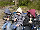 Am Mittwoch war der lang ersehnte Tag endlich da: die Schultaschen zu Hause gelassen, stattdessen große Koffer und Tasche, alles dabei, was man für drei Tage Klassenfahrt so braucht … Nachdem wir im Februar in der Schule übernachtet hatten, sollte es nun auf unsere erste Klassenfahrt gehen. Das Jugendgästehaus in Gailhof war unser Ziel! Und weil „Bären“ nicht gerne lange eingesperrt sind, auch nicht in einem Bus, machten wir nur eine kurze Fahrt zum Forellenhof nach Hellendorf. Von dort ging es dann mit Bollerwagen und Picknick im Gepäck zu Fuß weiter. „Das Wandern ist des Bärens Lust!“