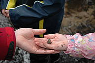 Wir waren aber nicht alleine – auch ein kleiner Frosch und eine Schnecke haben dort gebadet. Ganz vorsichtig konnten wir Frosch und Schnecke auf unsere Hände setzen. Louis war sich ganz sicher, dass die kleine Schnecke Mareike heißt und in Mellendorf wohnt! ;-)