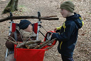 Nachmittags hat Mira geheimnisvolle Zeichen im Wald entdeckt. Wir waren natürlich alle neugierig und wollten herausfinden, was diese Zeichen zu bedeuten haben. Gemeinsam sind wir den Pfeilen gefolgt und haben doch tatsächlich einen Räuberschatz gefunden- eine Kiste mit leckeren Süßigkeiten und Seifenblasen. Wir haben sie mitgenommen und uns schnell auf den Rückweg gemacht. Zum Glück haben uns die Räuber nicht entdeckt.