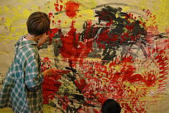 Gleich in der ersten Schulwoche haben die Schüler der Klasse Saniter den Matschraum der Schule unter den Eichen in einen Malraum verwandelt. Was genau das bedeutet, können Sie