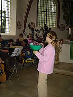 Am Schluss des Gottesdienstes warteten die Schülerinnen und Schüler schon darauf, wie im letzten Jahr, die Orgel zu hören und vor allem selbst auf die Empore kommen und die Orgel ausprobieren zu dürfen!