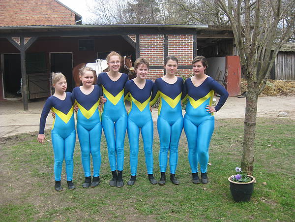 Bei strahlendem Sonnenschein machten sich unsere Turniervoltigierer am Samstag, den 10. 4. 2010 auf den langen Weg nach Lüchow ( 2 Stunden Fahrtzeit ). Überschattet wurde das Unternehmen durch den Unfall unseres Mitvoltigierers Kevin, der am Freitagnachmittag mit seinem Fahrrad so unglücklich stürzte, dass er wegen seiner Verletzung nicht starten konnte. Nach kurzer Ratlosigkeit, erklärten sich Mareike und Frau Pries bereit seinen Part des „auf das Pferd hinauf Helfens“ zu übernehmen und so startete eine reine „Mädelgruppe“ zu ihrem ersten Turnier ( nur Mareike hatte schon Erfahrung).