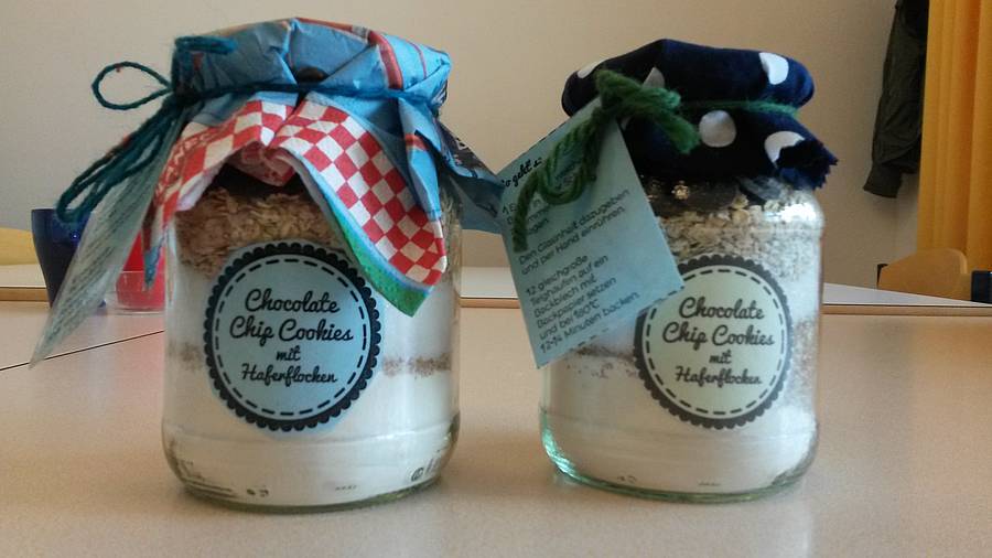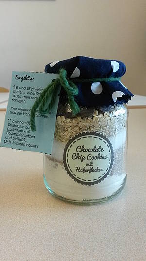 Backmischung im Glas für Chocolate Chip Cookies mit Haferflocken