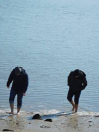 Wir machten lange Spaziergänge am Strand, sammelten dabei Muscheln und schauten uns die großen Schiffe an.