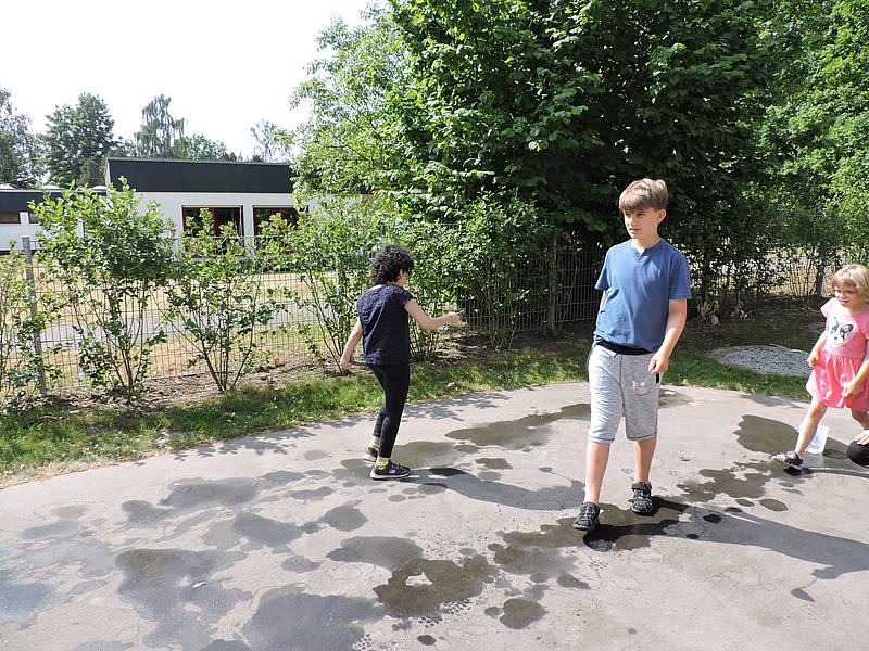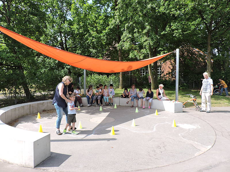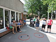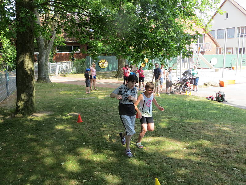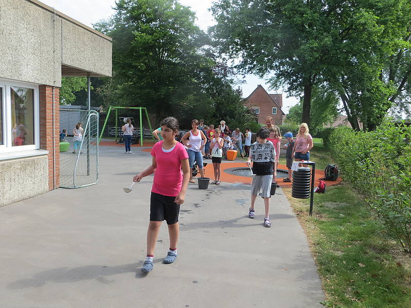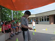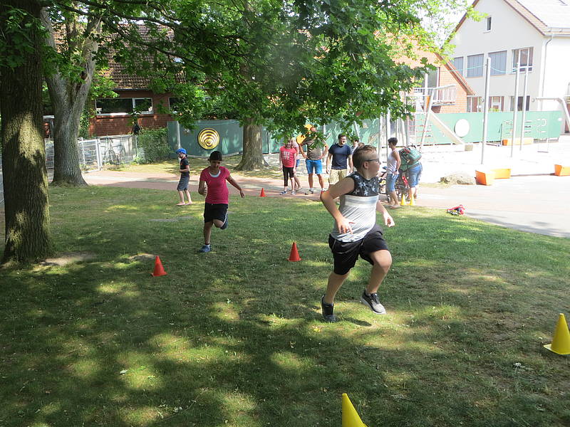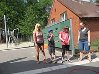 Danach konnten die Schülerinnen und Schüler ihr sportliches Können an verschiedenen Stationen auf dem Schulhof unter Beweis stellen. Folgende Disziplinen mussten gemeistert werden:
