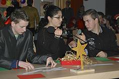 Auf unserer Rosenmontagsfeier war diesmal besonders viel los: die Twer-Klasse hat einen Supertalent-Wettbewerb organisiert, an dem sich Schüler alleine oder in Gruppen anmelden konnten. Die Jury - bestehend aus Dieter Bohlen (Simon), Lena Gercke (Feride) und Guido Maria Kretschmer (Patrick) - konnte sich bei den vielen Gesangs- und Tanzdarbietungen kaum entscheiden! Der Pokal ging an Annalena, aber alle Teilnehmer haben eine Medaille bekommen.