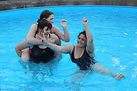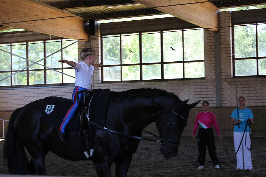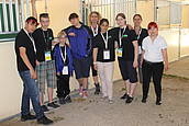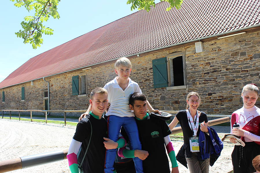 Auch in diesem Jahr konnten die Voltigierer zu den Special Olympics fahren, die diesmal vom 14.-16. Juni in Hildesheim stattfanden. Wir schliefen an diesen Tagen in der Schule, weil wir morgens am Donnerstag und Freitag sehr früh in Hildesheim sein mussten. Die Jungs Patrick, Khaled und Justin schliefen im Matschraum, die Mädchen Feride, Jeanette und Sandra schliefen im Snoezelen-Raum und Frau Ridder und Frau Koch im Lehrerzimmer. Jeden Tag hatten wir verschiedene Auftritte, Klassifizierungen und Küren im Einzel, Patrick mit seinem Unified Partner Justus auch im Duo. Wir haben viel gewartet, die schicken Anzüge an und wieder ausgezogen, den anderen Voltigierern und Reitern zugeschaut und viel Spaß gehabt. Außerdem waren wir noch bei der Eröffnungsfeier und bei einem Kulturbankett auf dem Marktplatz von Hildesheim. Am Donnerstag Nachmittag war die Siegerehrung: Jeanette hat einen ersten Platz gemacht, Feride und Justin einen zweiten und Patrick und Khaled einen vierten. Super!!! Und am Freitag bekamen Patrick und sein Partner Justus noch eine weitere Goldmedaille. Wahnsinn! Nun ein paar Fotos von den schönen Tagen:
