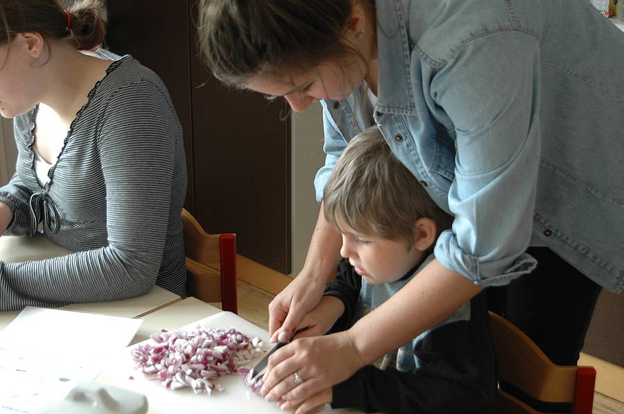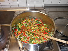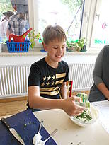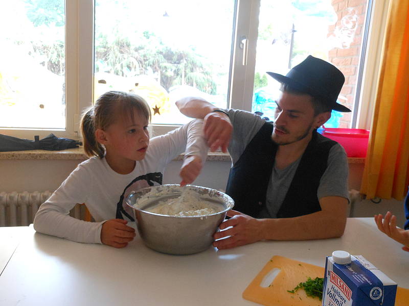 Am Donnerstag haben wir dann gemeinsam mit Frau Riepen für die ganze Schule ein „Wildwest-Menü“gekocht. Es gab Kartoffelecken mit Sourcream und dazu Maisgemüse. Wenn man für die ganze Schule kocht, gibt es richtig viel zu tun, aber am Schluss hat es allen gut geschmeckt und wir waren sehr stolz auf unsere Arbeit!