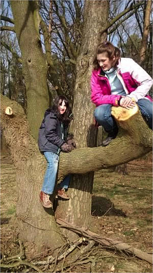 „Wir gehen in den Wald, man hört uns schon ganz bald! So gehen wir, so gehen wir in den Wald!“  So begann die Wald-AG stets mit einem kleinen Lied. Und gesungen - getan ging es bei Wind und Wetter jeden Dienstag hinaus in den Wald.  Merle, Nora, Julia und Jeanette spazierten motiviert mit Jessica, Cordula und Friederike los. Am Anfang des Schuljahres waren auch noch Max und Louis dabei, die aber im Frühjahr die Schule wechselten.