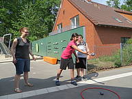 Danach konnten die Schülerinnen und Schüler ihr sportliches Können an verschiedenen Stationen auf dem Schulhof unter Beweis stellen. Folgende Disziplinen mussten gemeistert werden: