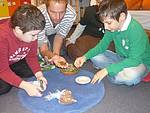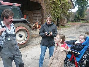 Nach den Sommerferien ging es los mit unserem neuen Projekt: „Tiere auf dem Bauernhof“! Jeden Mittwoch sind wir zu Bauer Gudehus gleich in der Nähe unserer Schule gegangen. Vorher haben wir in der Schule noch unser Frühstücksbrot geschmiert für unser Picknick auf dem Bauernhof. Wir hatten viel Glück mit dem Wetter, so dass wir immer draußen im Garten frühstücken konnten. Frau Gudehus brachte uns immer frische Kuhmilch, das war nett!
