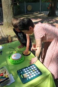 Es gab viel zu entdecken und auszuprobieren. So hatten die Familien und Freunde der Schule die Gelegenheit verschiedene Hilfsmittel, die an unserer Schule zur Unterstützten Kommunikation genutzt werden, selbst auszuprobieren.