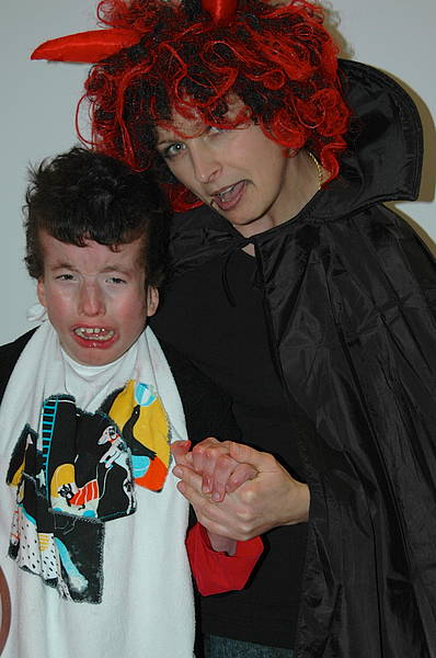 Nach der Pause gab es unsere traditionelle Rosenmontagsfeier, mit Schokokuss-Wurfmaschine, Popcorn, kleinen Hot-Dogs und natürlich viel Musik zum Tanzen! Beim Kostümwettbewerb hat die Jury diesmal besonders darauf geachtet, dass die Preise an Schüler gehen, die sich an unser Rosenmontag-Motto - in diesem Jahr "Helden und Schurken" - gehalten haben: der erste Preis ging an Tim, der zweite an Pascal und der dritte an Sandra.