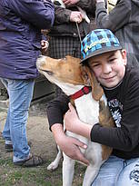 Nachmittags gehen wir zu Frau Winterfeld. Bei ihr dürfen wir Meerschweinchen und Kaninchen füttern und streicheln. Wir essen Kuchen und können uns die Wellensittiche, Laufenten und Hühner ansehen und mit den beiden Hunden spielen. Jakob mag die alte Hündin Merle besonders gern, wenn sie gähnt ruft er immer: „Da lacht der Hund!“ Feride überwindet ihre Angst vor Hunden. Zum Schluss wird noch gearbeitet: Frau Winterfeld zeigt uns wie man Apfelchips macht. Feride darf den Dörrapparat anstellen und morgen können wir die fertigen Chips abholen.