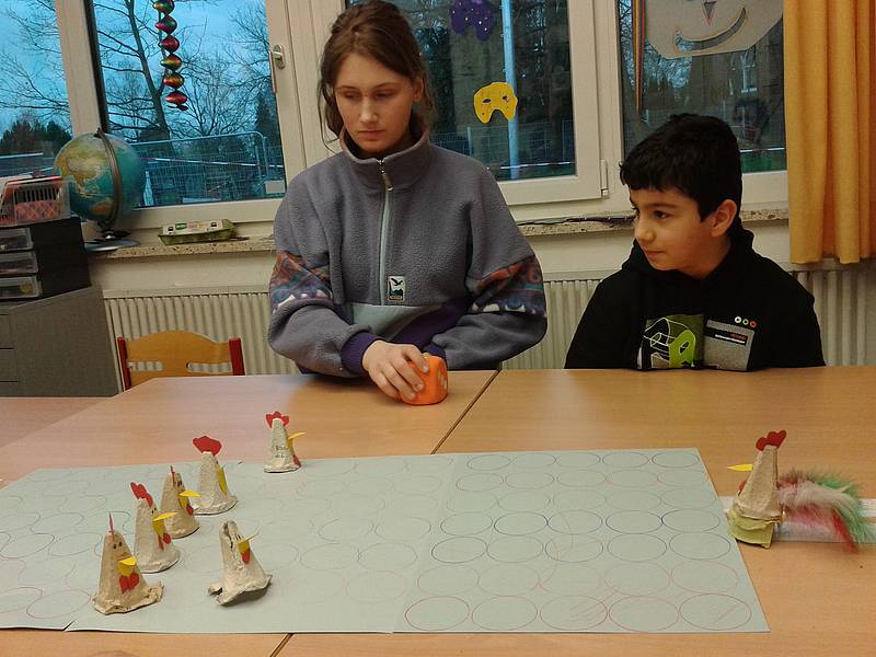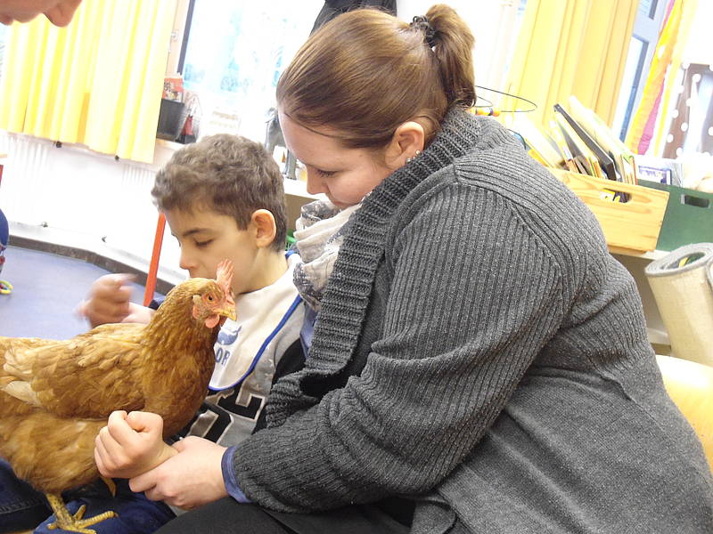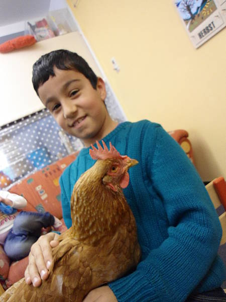 Traudel, ein Huhn von Frau Ridder war auch einige Male zu Besuch in der Schule und legte sogar ein Ei.