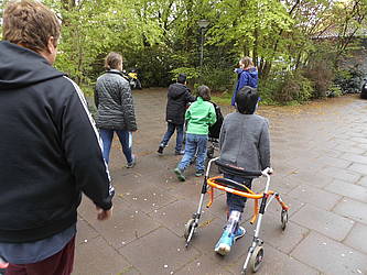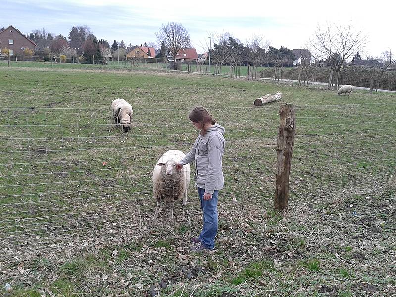 Wir sind oft draußen unterwegs und besuchen den Bauernhof in der Nachbarschaft der Schule.