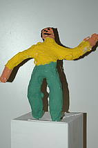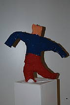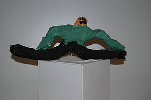 Wir haben über Keith Haring gesprochen. Dann haben wir aus Zeitung Figuren geformt und mit einem Faden umwickelt. Dann haben wir die Figuren mit Gips umwickelt. Zum Schluss haben wir sie angemalt. Für die Fotos haben wir die Figuren aufs Podest gestellt.
