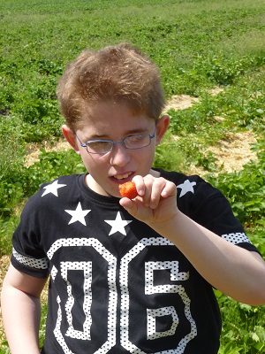 Und wer fleißig pflückt, darf natürlich auch mal probieren, ob die Erdbeeren denn überhaupt schmecken. Und wie sie schmeckten! Das finden übrigens nicht nur wir- so manche Erdbeere war doch tatsächlich schon von einem Tier angeknabbert worden. Aber trotzdem blieb noch eine Menge Erdbeeren für uns übrig- und auch die nächsten Naschkatzen können sich noch über so manche Erdbeere auf dem Feld freuen.