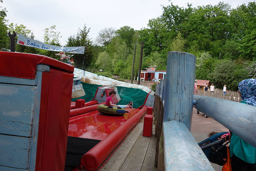 Unsere letzte Station waren dann der Spielplatz und die Rodelbahn in Mullewapp. Erstmal gab es eine Stärkung für alle Kinder und Erwachsenen. Die Kinder durften etwas Naschen, die Erwachsenen genossen eine Tasse Kaffe und alle haben ordentlich Wasser getrunken, denn es war ja sehr warm. Dann ging der große Spaß weiter. Luca und Julia trauten sich mit Kerstin, Marius und Frau Schienel in die Reifenrutsche – uiiii, war das ein Spaß :)!