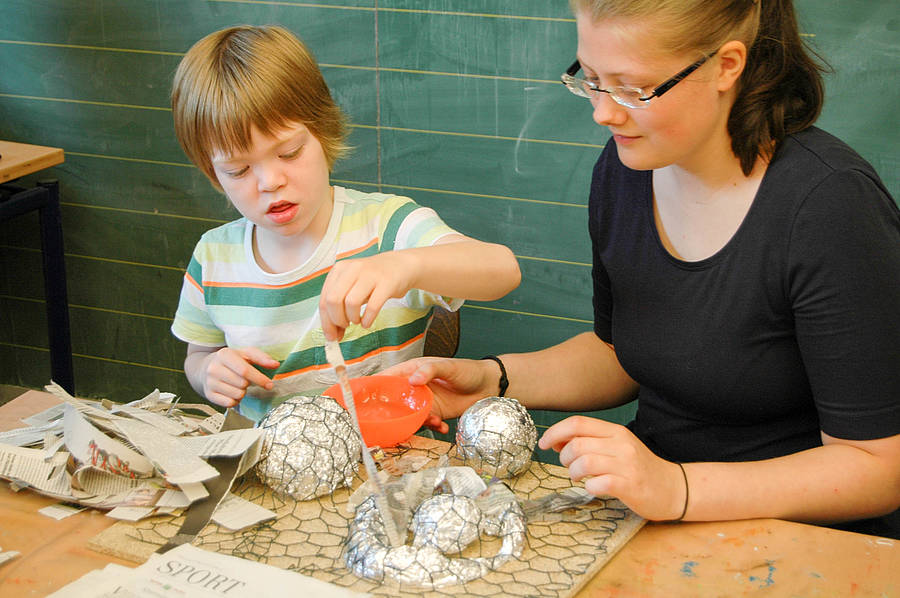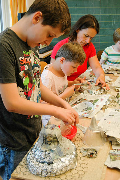 Am Dienstag haben wir erstmal aufgemalt, wie es auf unserem Planeten wohl so aussieht und ob da auch andere Wesen wohnen. Und wenn ja, sind diese freundlich oder bösartig? Auf den Bildern konnte man schon sehr viele verschiedene Ideen erkennen...