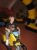 Gegen Ende haben wir noch ein Spielzeugmotorrad entdeckt, das sogar ohne Geldeinwurf fuhr. Man konnte es lenken und innerhalb einer aufgeblasenen Umrandung wie auf einer Rennstrecke fahren. Auf den Fotos seht ihr, wie viel Freude Jennyca und Feride dabei hatten.