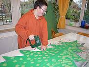 die Bäume für das Bühnenbild „werkeln“ und basteln,