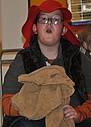 Dana als Räuberhauptmann, Frau Kistner, Louis, Pascal und Kamil beim Räuberessen! Aber dann wurden die Räuber vertrieben und die Bremer Stadtmusikanten aßen weiter:
