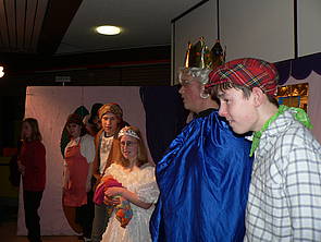 Die Abschlussklassen hatten diesmal das Märchen "Rumpelstilzchen" eingeübt. Es haben die Gebrüder Grimm geschrieben, wie Sie ja sicher alle wissen.