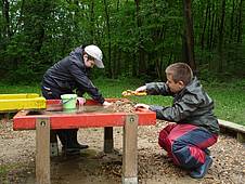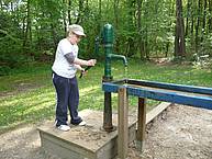 Am Nachmittag haben wir einen langen Spaziergang durch Hankensbüttel gemacht. Im Waldbad haben wir Eis gegessen. Zum Glück haben wir den tollen Waldspielplatz entdeckt! Dort gab es eine Seilbahn und eine Wasserpumpe im Sandkasten. Natürlich wird man dann auch ein wenig nass.