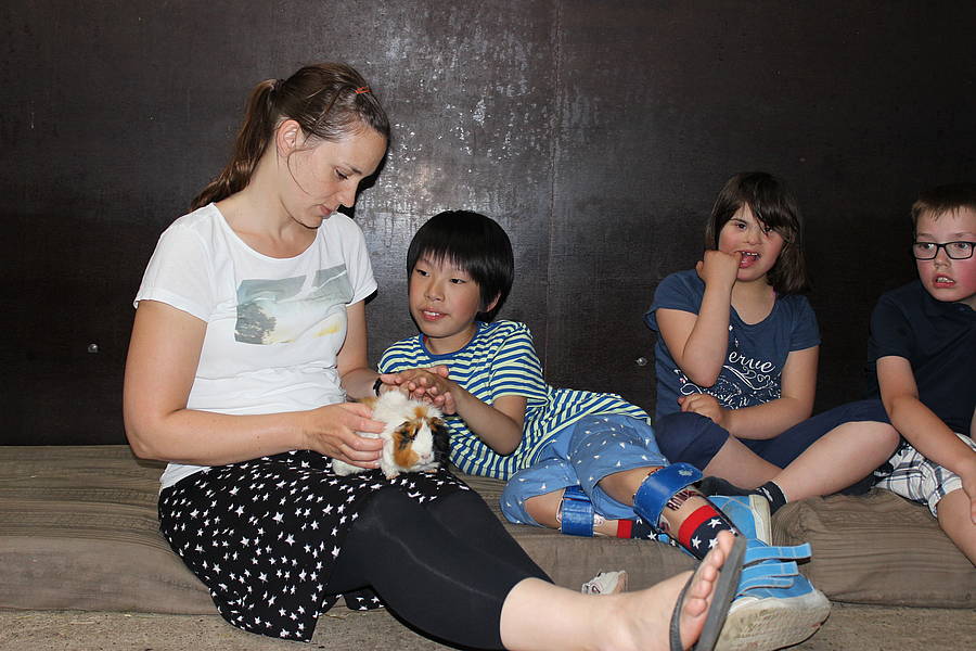 Am Montag kamen wir an und bezogen unsere gemütlichen Zimmer im Adlerhorst. Nach einem leckeren Mittagessen wurde der riesige Spielplatz erkundet und wir lernten die ersten Tiere kennen.
