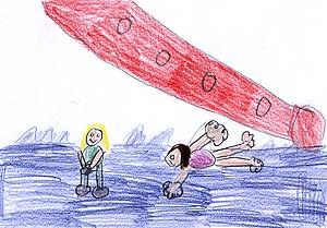 Dort haben wir am Wasser den Drachen fliegen lassen und sind vor den Wellen weg gelaufen. Wir haben uns auf die Holzpfähle gestellt und auf das Wasser gewartet- dabei hat Feride nasse Hosen bekommen.