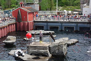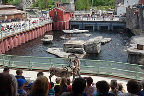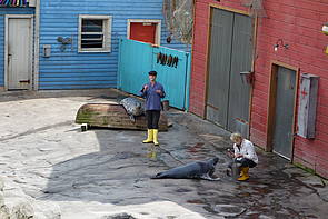 Dabei haben die Robben ganz viel Kunststücke gezeigt: sie haben mit ihren Flossen gewunken, haben mit dem Ball gespielt und sind durch einen Ring gesprungen. Die Kinder waren von der Show begeistert und Julia hat von allen Kindern am lautesten applaudiert! Dann gab es Mittagessen nach der aufregenden Show. Die Sandwiches mit Käse und Salami haben allen gut geschmeckt. Gestärkt und mit guter Laune ging es weiter vom Yukon Bay zu den Elefanten.