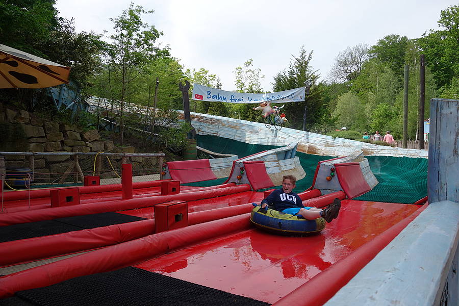 Unsere letzte Station waren dann der Spielplatz und die Rodelbahn in Mullewapp. Erstmal gab es eine Stärkung für alle Kinder und Erwachsenen. Die Kinder durften etwas Naschen, die Erwachsenen genossen eine Tasse Kaffe und alle haben ordentlich Wasser getrunken, denn es war ja sehr warm. Dann ging der große Spaß weiter. Luca und Julia trauten sich mit Kerstin, Marius und Frau Schienel in die Reifenrutsche – uiiii, war das ein Spaß :)!