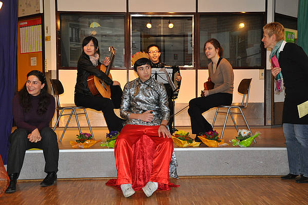 Unterstützt wurde sie durch die Musiker Siying Liu (Gitarre), Bin Guo (Akkordeon) und Miriam Hoffmann (Violine), die das Märchen in Töne umgesetzt haben.