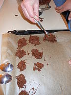 Jetzt werden mit dem Teelöffel kleine Häufchen auf ein mit Backpapier ausgelegtes Backblech gesetzt. Im Kühlschrank oder bei Kälte draußen fest werden lassen.