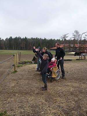 Auf dem Ponyhof Hagedorn – ein „Paradies“ inmitten von Wiesen, Wäldern und Moor – sollten wir in den kommenden fünf Tagen zu Gast sein. Eine Zeit voll Ruhe und ohne einen Augenblick der Langeweile. Bei unserer Ankunft wurden wir sofort begrüßt von Frau Hagedorn-Basler und von Meggi, dem „allerliebsten Hund auf der ganzen Welt“, wie Marie treffend feststellte.