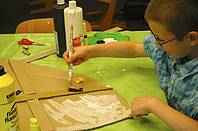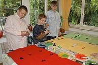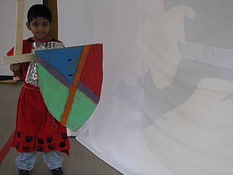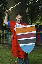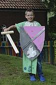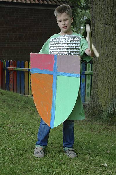 Am Dienstag haben sie Schilde gebastelt. Die Formen waren zum Glück schon ausgeschnitten, auch Griffe waren schon befestigt, so dass die zukünftigen Ritter sich ganz auf die kunstvolle und farbenfrohe Gestaltung konzentrieren konnten.