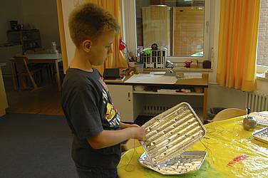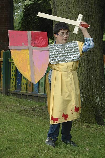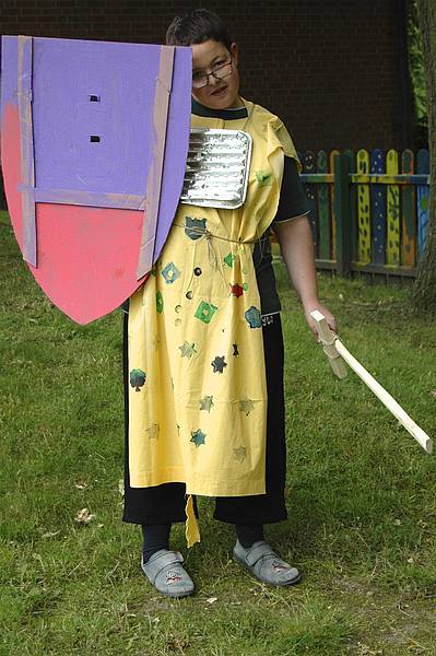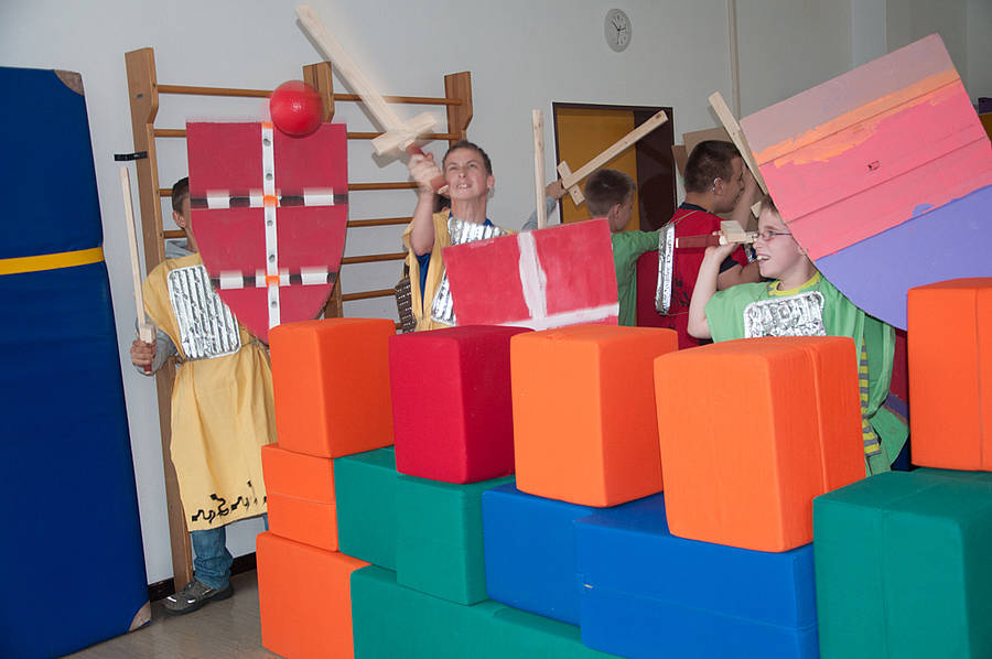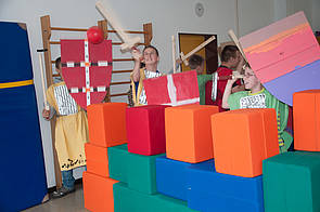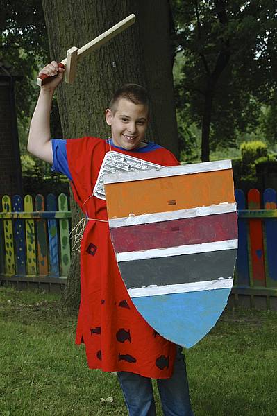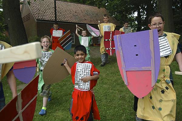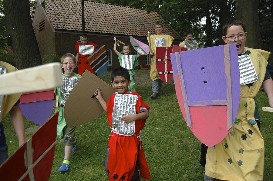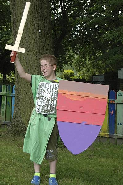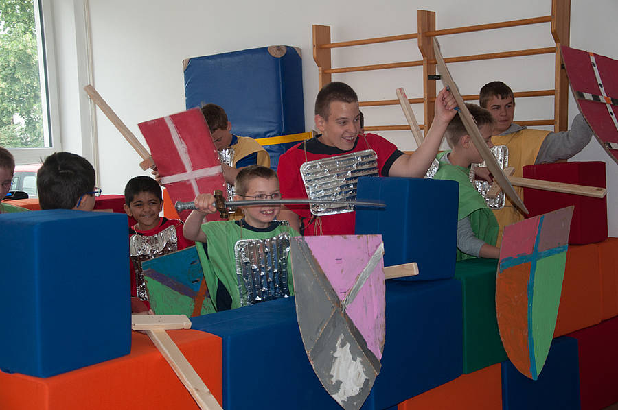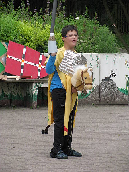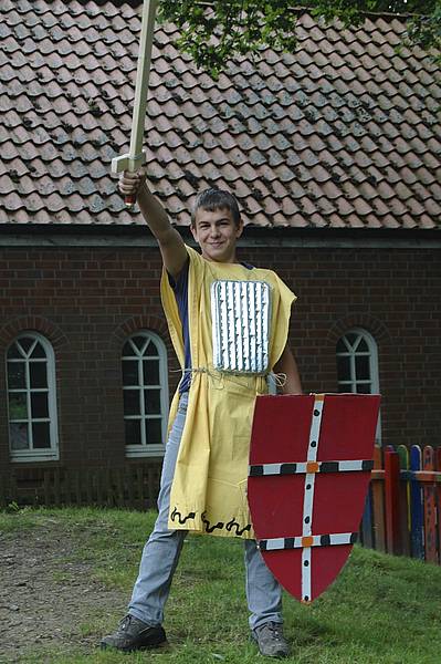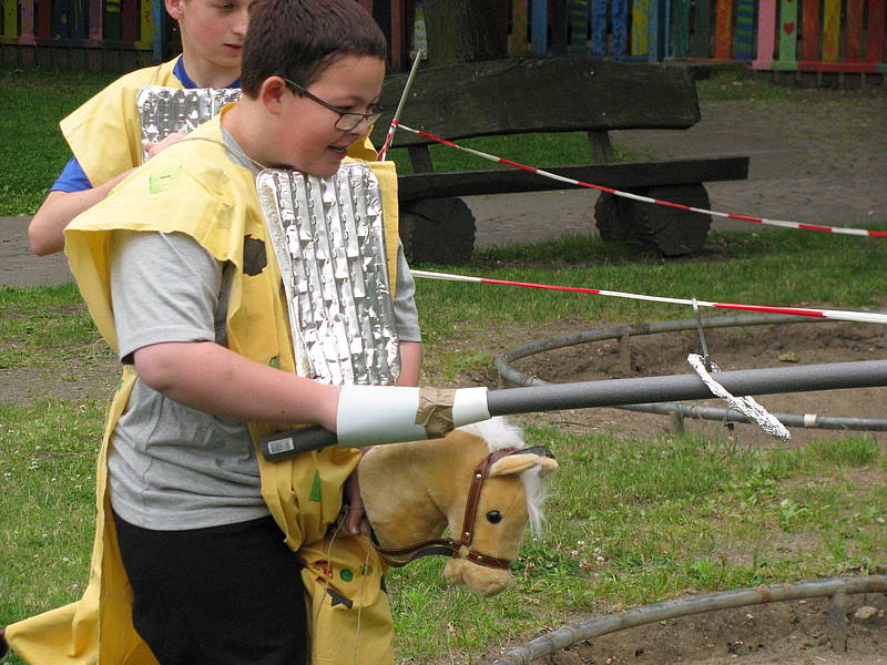 In der Ritter-Gruppe drehte sich alles darum, sich wie ein richtiger Ritter auszurüsten. Anders als die wirklichen Ritter im Mittelalter mussten Leon H., Pascal, Leon P., Luca, Zaroon, Arduan, Kamil, Simon und Patrick ihre Ritterrüstung allerdings selber bauen.