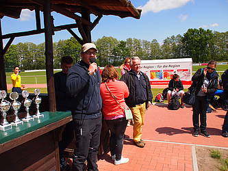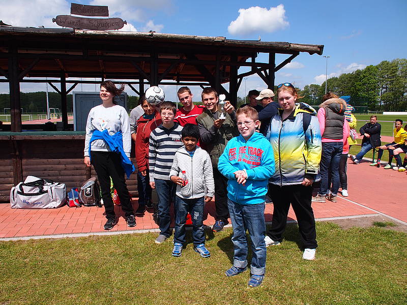 Nach 15 spannenden Fußballspielen stand gegen 12.30 Uhr die Gewinnermannschaft fest und nachdem sich alle Spielerinnen und Spieler geduscht und umgezogen hatten, begann die von allen erwartete Siegerehrung. Leider konnte unsere Mannschaft den Heimvorteil nicht nutzen und belegte den letzten Platz. Den ersten Platz belegte die Selma-Lagerlöf-Schule aus Empelde-Ronnenberg vor den zwei Mannschaften der Pestalozzischule Burgwedel. Die Ilmasi-Schule aus Garbsen und die Astrid-Lindgren-Schule aus Nienburg teilten sich punktgleich den vierten Platz. Alle Mannschaften freuten sich über die von der Firma Swiss-o-par gestifteten Pokale und Fußbälle.