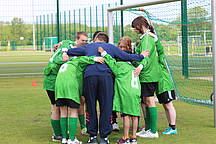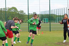In den Spielpausen wurde unser Team von Herrn Arnold betreut, welcher auch in der Aufwärmphase mit Rat und Tat zur Seite stand. Hoch motiviert kämpfte unsere Mannschaft um jeden Ball und schoss im Verlauf des Turniers einige Tore. Die Abwehr und besonders unsere Torfrau Feride machte es jedem Gegner schwer den Ball über die Linie zu kriegen.