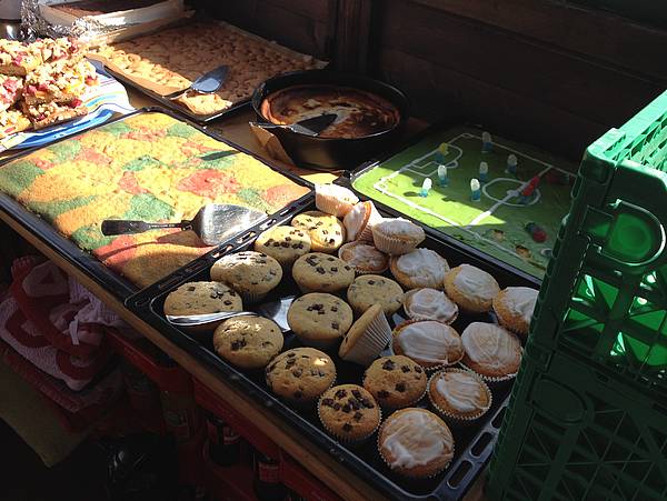 Während des Turniers sorgten die Schülerinnen und Erwachsenen der Abschlussstufe für die Verpflegung der angereisten Zuschauer. Hierfür hatte jede Klasse einen Kuchen, Salat oder Muffins zubereitet, die dann zum kleinen Preis verkauft wurden. Zusätzlich gab es noch Würstchen und von Rewe Zwingmann gesponserte Getränke.