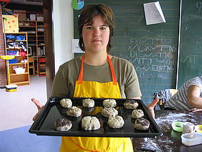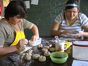 Mareike und Vicky haben Vollkornbrötchen gebacken.
