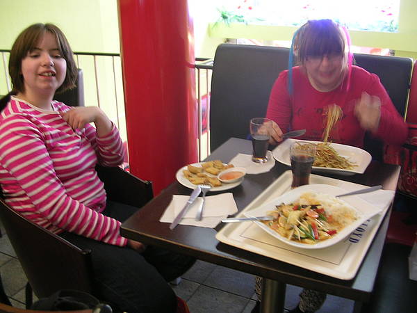 Daher sind wir anschließend erstmal Mittagessen gegangen und es gab gebratene Nudeln, Reis mit Gemüse und Frühlingsrollen - hmmmm! Zum Nachtisch noch eine leckere Kugel Eis in der Innenstadt von Hannover. Und natürlich schnell noch was Süßes für Herrn Pollen und Bea besorgt, die ja mit Anzhelika und Jessica in der Schule geblieben sind!