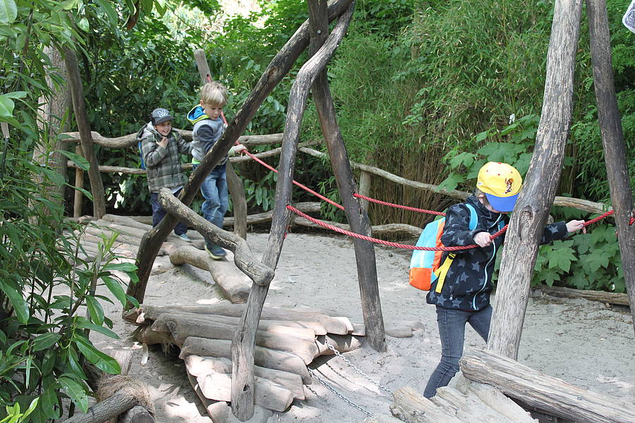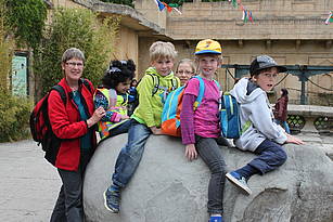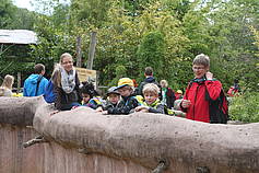 Zunächst gab es die Bootstour auf dem Sambesi, wo wir viele Vogelnester und vor allem einen brütenden Storch bewundern konnten. Anschließend wurde erst einmal das mitgebrachte Frühstück gegessen. Danach konnten wir die Giraffen bestaunen, die sich mit ihrer langen Zunge die leckersten Blätter aus den hohen Zweigen holten. Auch bei dem Eisbär ging es spannend zu. Durch die Fütterung war er ganz aktiv im Wasser und man konnte sehr schön sein weiches Fell unter Wasser betrachten. Auch die Elefanten, Tiger und Leoparden waren Highlights. Ganz besonderes Interesse galt ebenfalls den schlafenden Wölfen und quirligen Präriehunden. Mittags freuten wir uns über die Familienportion Pommes und es war mal wieder erstaunlich, wie schnell die Zeit bei den vielen Eindrücken vergangen ist. Auf der Rückfahrt im Bus ist so mancher kurz eingeschlafen.