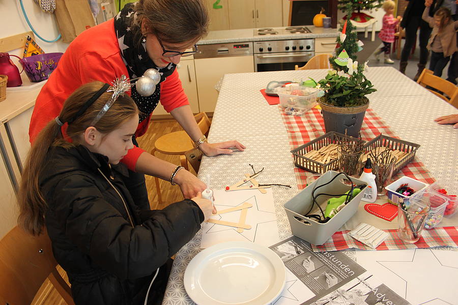 Gemeinsam wurde weihnachtlich gebastelt, gebacken und gesungen. Außerdem gab es verschiedene Leckereien, wie Bratwurst, süße und herzhafte Waffeln sowie viele verschiedene Kuchen.