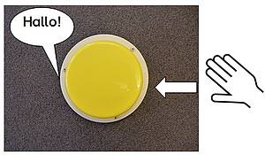 Oft arbeiten wir auch mit dem BIGmack. NEIN, den kann man nicht essen! Es ist eine große runde Taste, die einen zuvor aufgenommenen Text wiedergibt, wenn wir auf die Taste drücken.