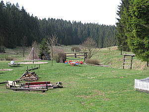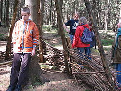 Die Teiche, verbunden durch Gräben, waren für den Bergbau von besonderer Bedeutung, da ohne ihr Wasser die Maschinen nicht hätten betrieben werden können. Außerdem bauten wir Köhlerhütten im Wald, was vor allem Ruben und Marcel viel Spaß bereitete.